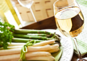 Het traditionele aspergegerecht is de combinatie met ham en ei en daarbij mag natuurlijk een heerlijk glas Pinot Blanc niet ontbreken.